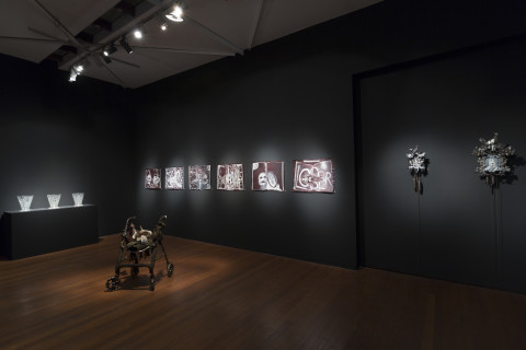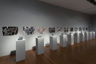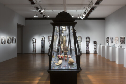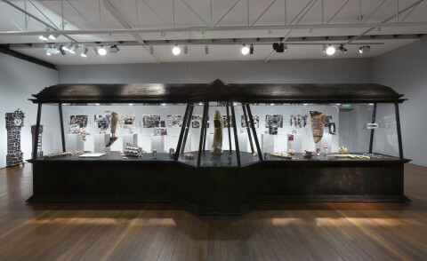 Fiona Hall has mounted numerous solo exhibitions and participated in many groups exhibitions in Australia and internationally, and was the country’s representative at the Australian Pavilion of the 56th Venice Biennale in 2015 with the installation work 'Wrong Way Time' (2012–15). Notable exhibitions include 'Wrong Way Time', National Gallery of Australia, Canberra (2016); Adelaide Biennial of Australian Art, Art Gallery of South Australia, Adelaide (2014); Australia, Royal Academy of Arts, London (2013); dOCUMENTA 13, Kassel, Germany (2012); Biennale of Sydney, Sydney (2000 and 2010); the 3rd Moscow Biennale of Contemporary Art, Moscow (2009); 'DeOverkant/Downunder', Den Haag Sculpture, Netherlands (2007); and 'Prism: Contemporary Australian Art', Bridgestone Museum, Tokyo (2006). Major retrospectives of Hall’s work have been held by Queensland Art Gallery | Gallery of Modern Art, Brisbane and the Art Gallery of South Australia, Adelaide (both 2005). Hall’s work has been collected by all the major Australian state museums. She has also completed a number of important public commissions in Sydney and Canberra in the past two decades.