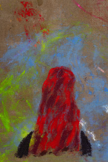 acrylic and Japanese pigment on rabbit skin glue primed cotton duck; wooden ladder on shelf