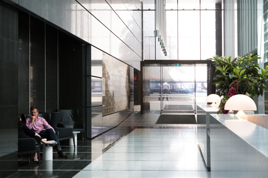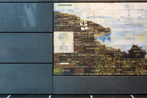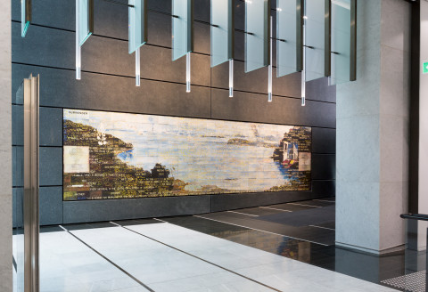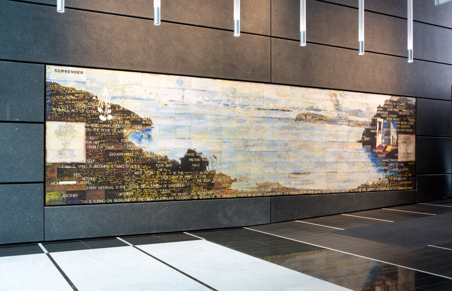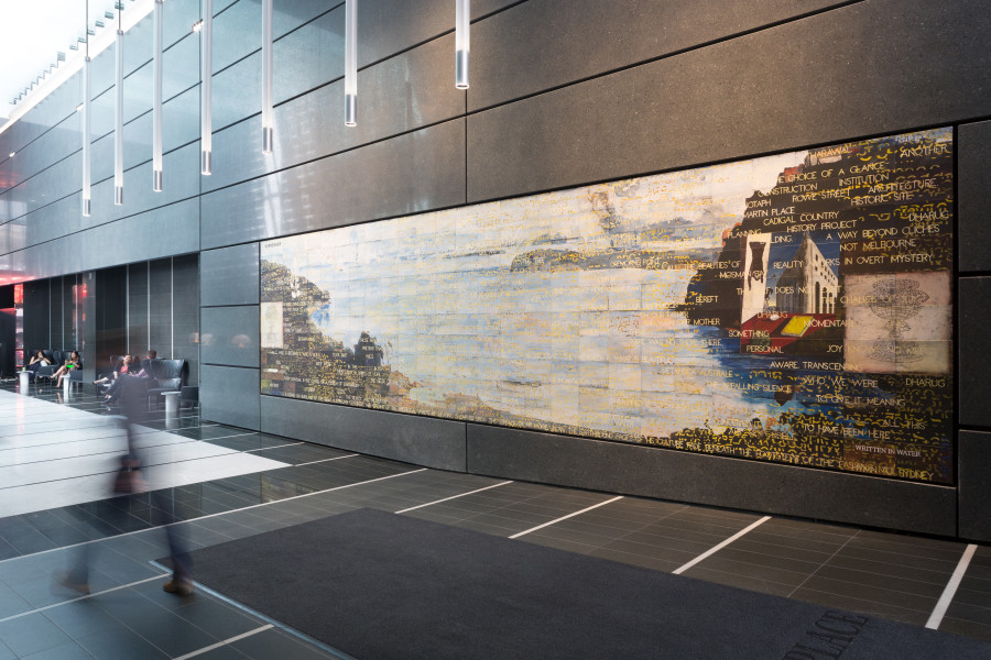 Written in Water (Hymn to Sydney) by Imants Tillers is a permanent installation at 5 Martin Place, Sydney.