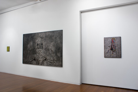 Boyd’s subject matter reveals an underlying theme of inheritance, in particular the inheritance of primitivism and its influence on Modernist aesthetics. The disparate subject matter is brought together as a mapping of 'forefathers': Matisse, Picasso as well as Boyd’s great great paternal grandfather who was brought from the island of Pentecost to Queensland as a slave in the sugarcane fields. These progenitors – both artistic and genetic – are linked in the exhibition by the sculptural figure from Vanuatu (then New Hebrides) that was in Matisse's private collection and given to Picasso after Matisse's death. Two of the paintings in Daniel Boyd’s exhibition include details from a photograph documenting the handing over of the object.