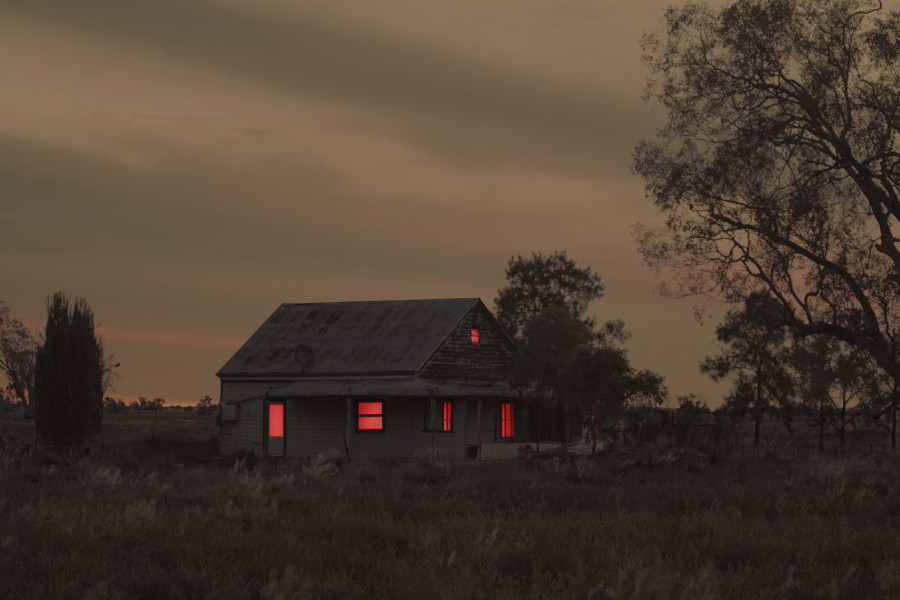Internationally acclaimed Australian artist Tracey Moffatt has created a new site-specific art installation entitled A Haunting which is an abandoned farm house that pulses red light.