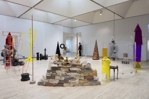 Mikala Dwyer creates objects and installations that are both playful and provocative, re-imagining familiar materials and what they say to us about the world in which we live. Her highly engaging sculptures explore ideas about shelter, childhood play, modernist design and the relationship between people and objects.