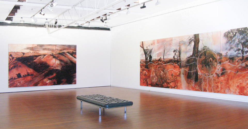 In paintings, including the Strzelecki Desert series and the Salvator Rosa series, her preoccupation has been not only with the landscape, but also with modes of visualisation employed by artists to depict that landscape. By referring to Ludwig Becker and Salvator Rosa, she refers to whole systems of seeing the landscape and by revisiting the specific sites and their paintings of them, she creates images which are multilayered. We are presented with different ways of seeing the landscape within the one painting and meaning resides more in this juncture or the seams between the different systems, rather than in the overall impression. At the same time, they are visually very engaging paintings of considerable beauty and power.