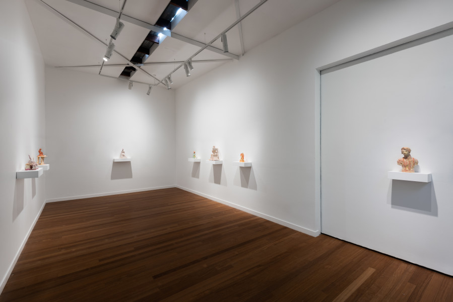 Extravagant opulence meets classical technique in All hail Tony Duquette!, an exhibition of new statuettes and tableaux by Linda Marrinon. Paying homage to the lavish aesthetic of Tony Duquette, a titan of maximalist design from the early twentieth century, in her latest exhibition with Roslyn Oxley9 Gallery, Marrinon gives resonance to Duquette’s penchant for flamboyance and theatricality through her modestly scaled terracotta and plaster sculptures.