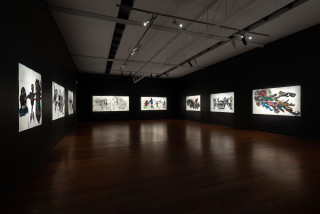 Within an anachronistic storyboard, Mukeba’s characters are brought to life by the artist’s acute technical dexterity, allowing intense emotional states to capture sinful acts. Dazzling vignettes of personal experiences, articles read, images absorbed, contemporary myths told by family members and current events are interpreted into modern religious fables within sculptural windows of layered materials.