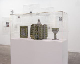 Brook Andrew Boy (magenta) & pink ceramics, 2018
