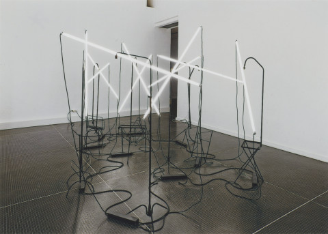 Bill Culbert's recent installations, such as Daylight Flotsam, presented in Venice in 2013 and reactivated in Montélimar in 2014 then in Dole in 2015, constantly play on a tension between the beauty of forms, of colours, the masterful effects of light, and a more serious attention to the world.