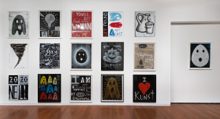 As a New Zealander I find it is impossible to look at Nell’s paintings without thinking of him. Besides the fact that Nell is a self-confessed “major McCahon fan”, like McCahon she also transforms words into visual imagery by rendering exquisitely considered typologies and fonts into paintings. Where McCahon used the bible and the words of local poets with whom he collaborated; Nell ‘s popular culture is a showcase of her deep knowledge of pop music and in this instance, instead of the bible, she uses words from ancient and universal wisdoms such as St Francis of Assisi’s “Peace Prayer” and The Diamond Sutra.