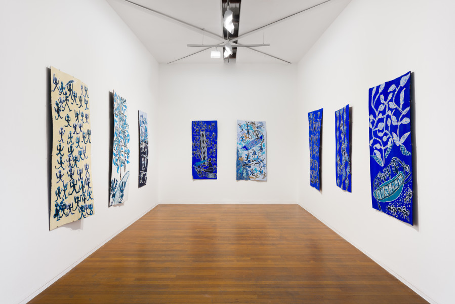Following a car accident in 2007, which left her with life threatening injuries, Dhambit courageously overcame restrictions on her movement and speech to create a distinct and dynamic practice. Durrk - I can fly at Roslyn Oxley9 Gallery continues the artist’s foray into the colour blue, a hue that has become the dominant palette for her larger works since 2019.