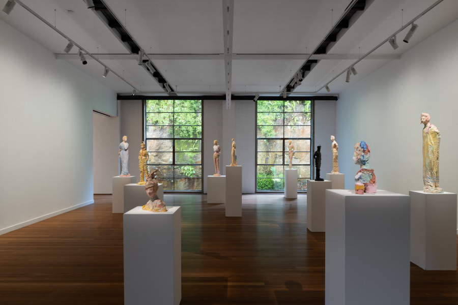 In her 19th solo exhibition with the gallery since 1983, Linda Marrinon continues her distinctive reimagining of art historical tropes through hand-modelled plaster and bronze forms. Drawing on the aesthetics of classical antiquity and 19th century studio practice, these sculptures adopt the gestures, accessories and attitudes of bygone eras while gently unsettling their authority.