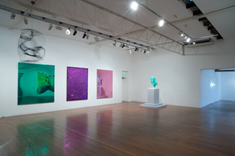 This exhibition showcases pieces by some of the gallery’s most distinguished contemporary artists. The works on display push the edges of materiality, spanning painting, sculpture and video. Dale Frank continues on his quest to lead painting into an extended space – these works are pared back and elegant. Frank’s works look deceptively simple but they are masterful in their application of non-conventional materials. Bill Culbert’s medium is light. The everyday is illuminated in these works. His use of light encourages the viewer to witness the sublime and deep beauty possible in the ordinary. Jim Lambie’s works in this show are a manipulation of space and form, as though he were drawing in other planes of existence. There is optimism in the representation of space and energy. Callum Morton’s Cover Up #26 (2016), draws on the sculptural tradition, the history of the plinth and notions of concealment. This work prompts the viewer to ask what is being covered up. Gareth Sansom’s Bliss (2010), is like taking a walk through art history with its multiple painterly expressions and TV Moore’s Tripasso in Wackyland (2014), is a Disneyesque series of tragicomedies. Michael Parekowhai’s They Comfort Me III (2014), is a sculpture that playfully draws on childhood associations with toys. By playing with scale these forms become almost magisterial and totemic.
