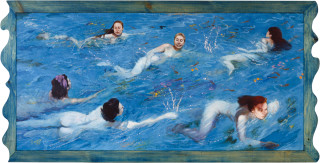 Her "Heads Above Water'' series of paintings reflects and refers to a lengthy western tradition of male artists who had painted the female nude as a bather swimmer. Such images of the female in art have always functioned as ambiguous symbols, primarily sensual and formally and hieratically sublimated into an