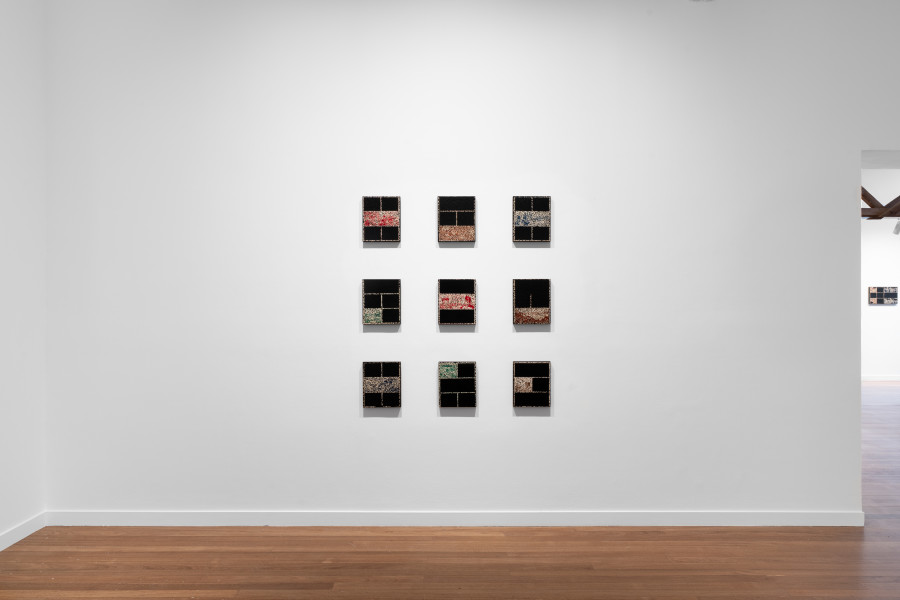 Parallels can be traced to the work of Gordon Bennett, who drew from the very the same educational material some forty years earlier and to whom Boyd offers both visual and conceptual homage. Within this exhibition, we become immersed in an oscillating environment: floating in the murky waters of imperialism, Boyd’s lenses open a space in which we can enter Australia’s painful past. In these blurred edges – where images dissolve, fragment and re-form – we begin to see more clearly. Like Boyd’s lenses, we attempt to map time and place together, unfolding our own histories as we move through the space, held in a poetic liminality and drawn into a cyclical dance.