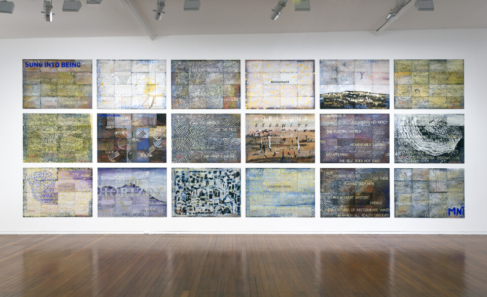 Imants Tillers has exhibited widely since the late 1960s, and has represented Australia at important international exhibitions, such as the São Paulo Bienal in 1975, Documenta 7 in 1982, and the 42nd Venice Biennale in 1986. Tillers will present a major solo exhibition titled Journey to Nowhere at the Latvian National Museum of Art, Riga, Latvia in 2018. Major solo surveys of Tillers’ work include Meeting Place: Imants Tillers and Michael Nelson Jagamarra, Parliament House, Canberra (2017); Dreamings: Australian Aboriginal Art meets De Chirico, Museo Carlo Bilotti, Rome (2014); The Long Poem, Lawrence Wilson Art Gallery, University of Western Australia, Perth (2009); Imants Tillers: one world many visions, National Gallery of Australia, Canberra (2006); Transmissions: From here and there: Works by Imants Tillers, Monash University Museum of Art, Melbourne (2004); Towards Infinity: Works by Imants Tillers, Museum of Contemporary Art (MARCO), Monterrey, Mexico (1999-2000); Diaspora in Context: Connections in a Fragmented World (touring exhibition), Pori Art Museum, Pori, Finland; Museum of Contemporary Art Australia, Sydney; Govett-Brewster Art Gallery, New Plymouth, New Zealand; Waikato Museum and Art Gallery, Hamilton, New Zealand (1995-96); Diaspora: Imants Tillers, National Museum of Art, Riga, Latvia (1993); Imants Tillers: 19301 or as of October, National Art Gallery, Wellington (1989); Imants Tillers: works 1978-1988, Institute of Contemporary Arts, London (1988); Paintings for Venice: Australia at the 42nd Venice Biennale, Queensland Art Gallery, Brisbane; Australian Centre for Contemporary Art, Melbourne; Art Gallery of South Australia, Adelaide (1987); Australian Appropriations: The Recent Paintings of Imants Tillers, Vollum College Center Gallery, Portland, United States (1987); and The Bridge, Art Gallery of New South Wales, Sydney (1982). In 2005 he was awarded a Doctor of Letters Honoris Causa for ‘his long and distinguished contribution to the field of arts’, by the University of New South Wales. In Normal Times is Imants Tillers’ fifth solo exhibition with Roslyn Oxley9 Gallery.