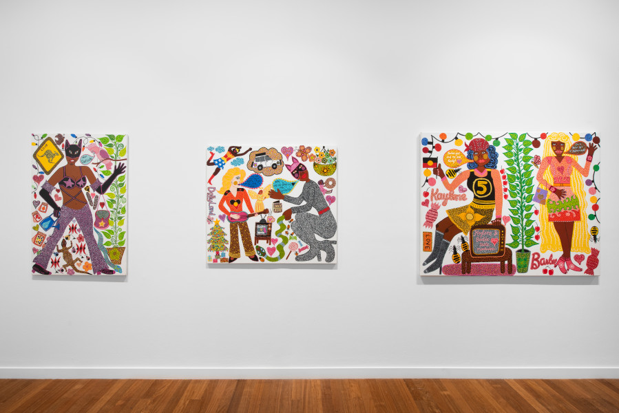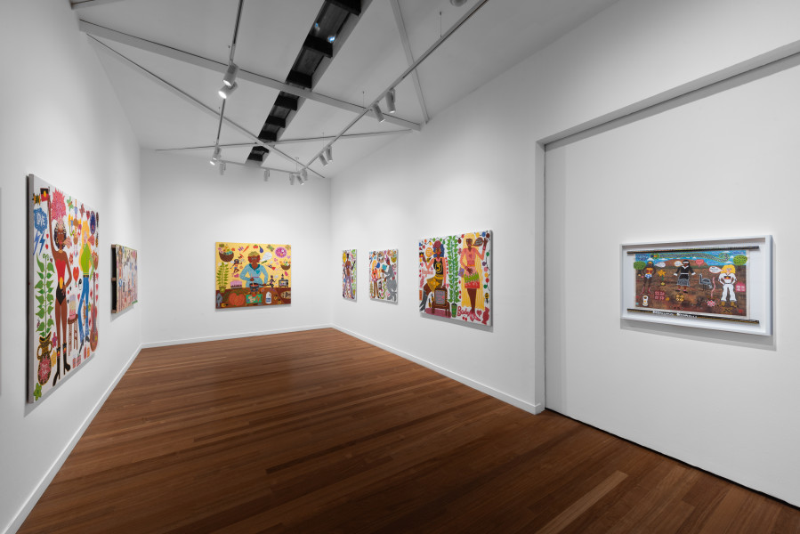 This exhibition, featuring her acclaimed 2023 Archibald Prize finalist painting of the same name, serves as a jubilant ode to community and Country. It envisions a realm where imagination intersects with reality, and where friendship flourishes amidst superheroes, Sister Act, and song. Infused with humour and heartfelt storytelling, Whiskey’s practice offers a compelling exploration of contemporary Aboriginal life, providing a incisive commentary on cultural identity. Through her work, she invites audiences to share in a vibrant celebration of resilience, creativity, and communal strength.