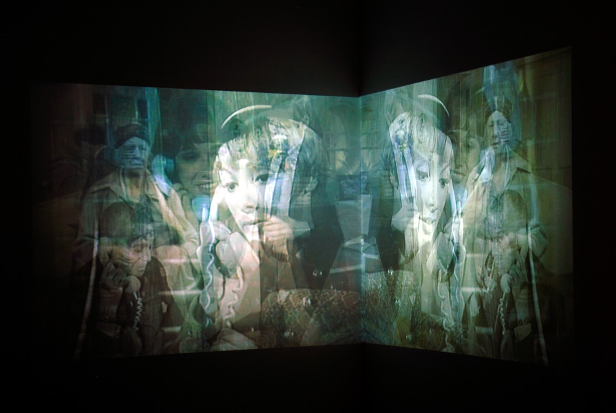 Backen’s installation hinges on a major new video work commissioned by the ABC for the 2006/2007 archive project, Yours, Mine Ours: 50 Years of ABC TV. Projected on two screens that mirror each other, It’s me… I’m here… where’re you? reads like a symphony of telephone use in Australian TV drama. Fragments of phone conversations sourced from the ABC’s archives float in ghostly layers across the screens; the blurred scenes and sounds suggesting the murky layers of collective memory. Short excerpts of dialogue are distinguishable amongst a cacophony of greetings, demands, questions, exclamations and goodbyes. But the multiplicity of connections, conversations and disconnections ensure that meaningful narratives are unattainable. Instead we are left with remnants and extracts that are as tantalizing as they are dissatisfying. There is a sense of loss as we are only allowed entrée to one side of the dialogue; the ‘other’ voice always absent. The one constant presence is the telephone: grey, black, white; mobile, immobile, cordless; ringing, pulsing, beeping.