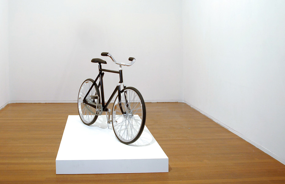 Viewing this strangely familiar object initiates a series of questions and re-evaluations, including a re-assessment of our own sense of sight. Is Angus suggesting three bicycles melded together as if the individual objects had been subjected to some kind of intense gravitational force? Or is it that we witnessing a single bicycle paused in the exact moment of organic replication, where each part of the structure is duplicating itself like series of mutating cells? However we approach Angus's immaculate sculpture, our understanding of the material world is challenged. Characteristically, Angus reveals the extraordinary in the ordinary and invites new and imaginative ways to consider the physical world.