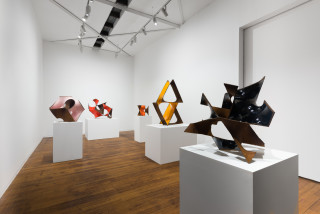 Rendered in exaggerated perspective, a foreshortened steel I-beam is a familiar fiction. It is a simple drafting trick made to signify productivity and speed and all the optimism of the early machine age. However all bubbles inevitably burst. If the process of steel production starts at a foundry or a mill, it sometimes ends with an oxy-acetylene torch. This is the cutting tool that causes sparks to fly when buildings are demolished and beams are hacked apart. Showing the same scars, all of these sculptures might once have belonged to a larger, failed structure. They should be seen as extractions.