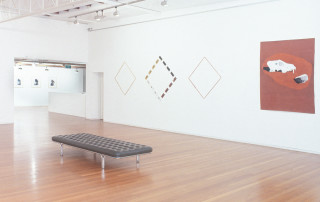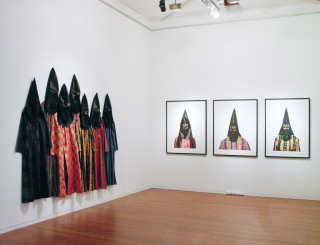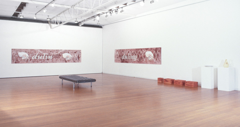 Fiona Foley's exhibition of new work, Living with the Wind, forms a kind of map, or visual diary, of a range of different experiences. The title refers to the time an artist spends by herself creating a new body of work, and the introspection that this involves. Foley has for many years created work that speaks its own private tongue, with symbols and references that relate to her extensive travels both within Australia and overseas and her family history and language (that of the Badtjala people of Hervey Bay and Fraser Island). Living with the Wind includes work inspired by Foley's journey to Korea last year, as well as ceramics created in collaboration with Kelvin Yazzie, a Navajo artist-in-residence at Hervey Bay.
