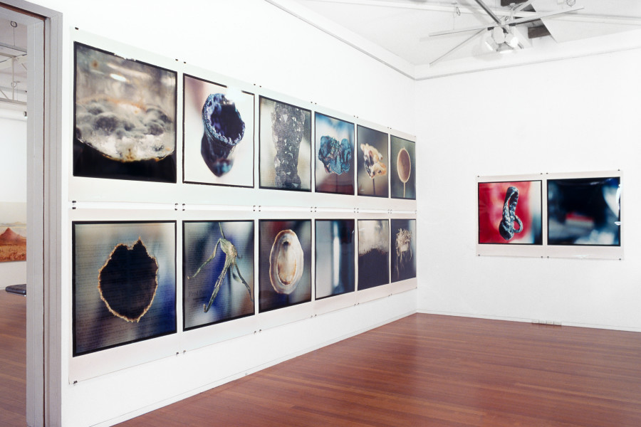 This exhibition of large format colour photographs is inspired by the twin ideas of DNA and inherited memory. The images are about death, decay and transformation, using enlarged details of found objects such as dying flowers, dried seed pods, mould and fungus. Sometimes these objects are superimposed over pages of historical texts, opera guides or newspaper obituaries, playing on the connections between fiction and reality, word and image. Many of the natural forms display strong associations with scars and human flesh, while some photographs show out-of-focus landscapes resembling blurred scenes seen through foggy windows.