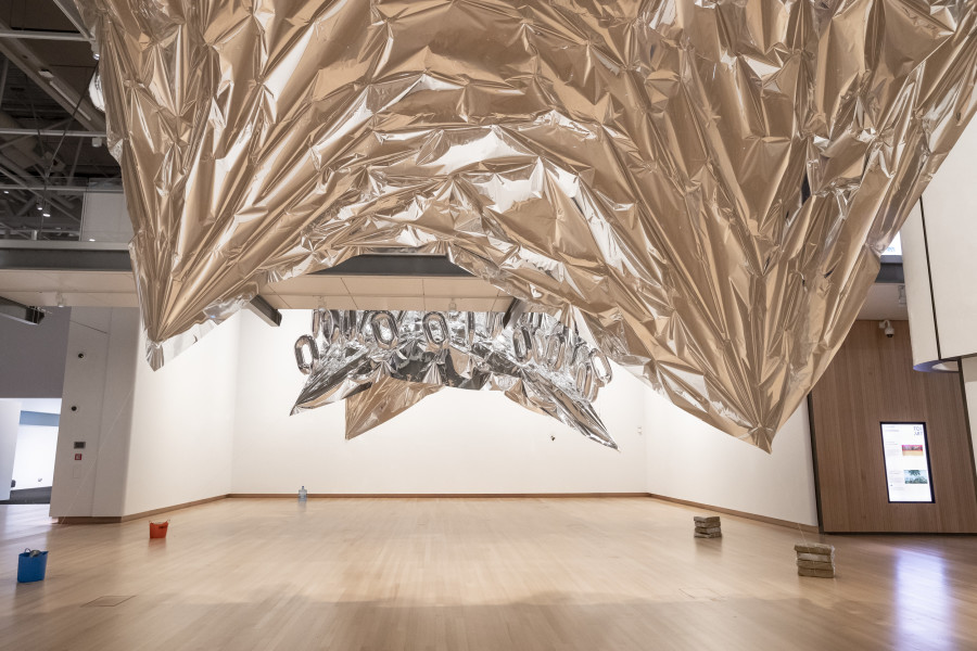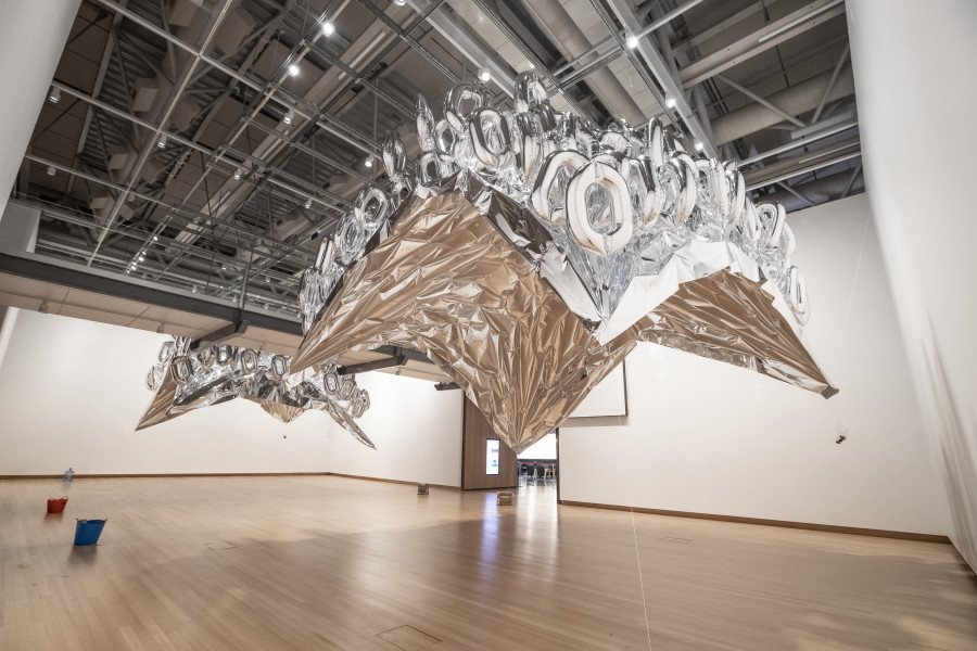 Zero is a number that usually describes absence – but here, it is an energising presence. The zero-shaped balloons change as helium escapes, and the sculpture gradually descends. The silverings invites us to consider the everyday forces – seen and unseen – that shape us.
