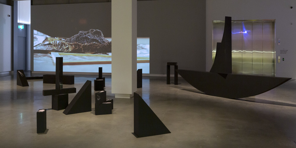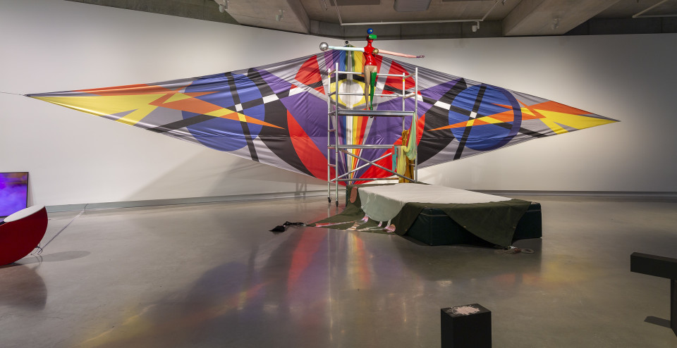 As part of Bauhaus Now!, guest curated by Ann Stephen, the ground-floor installation by Mikala Dwyer and Justene Williams is part resurrection and part zombie dance. The first-floor gallery displays rare Bauhaus archival material from the two former Bauhaus students exiled to Australia, Gertrude Herzger-Seligmann and Ludwig Hirschfeld-Mack.