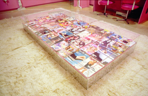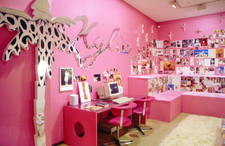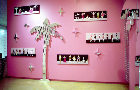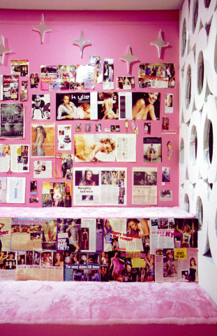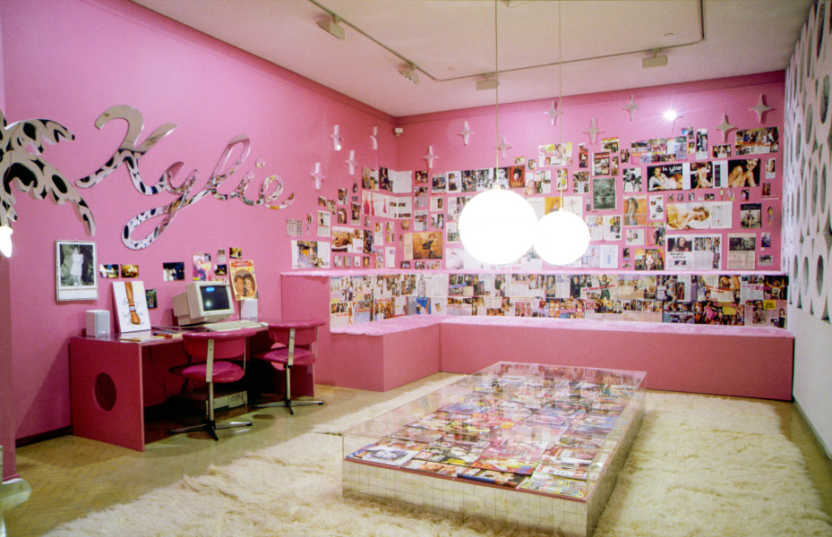 Kathy Temin began a series of works about the Australian pop star Kylie Minogue and the phenomenon of fan culture. My Kylie Collection (2001) was the first of this series, and was installed at Museum of Contemporary Art, Sydney. It took on the appearance of a teenager's pink bedroom that was also an obsessive shrine with its vast collection of CD albums, posters, and magazine covers featuring the star.
