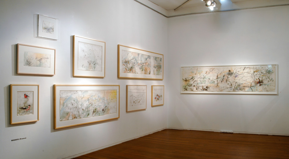 I thought to myself...' What would happen if I had one wall full of paintings of Mallee plants and birds, and then on the opposite wall their counterparts from the Maquis ? What would happen for the viewer standing there in the space in-between ? Would the earth move?