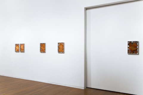 Dawson hand-fabricated the complete system necessary to make the Palethorp series: foundry, tooling (crucible, lifters, pouring handles, skimmers, stands), green sand mould (cope and drag, rammer, sieve, muller and green sand). This is an elaborate, meticulously researched and controlled making system. Dawson set his foundry up in a fenced lot owned by a Philadelphia artist on Palethorp Street at the fringe of an area commonly known as “The Badlands”, notorious for its resilient open air drug markets. Here, people are on edge. The Palethorp series represents the nexus at which Dawson’s extreme control of the making process is ruptured by the chaos of the process of amalgamation that ultimately defines each work. Scrap aluminium (from Dawson’s studio) is heated in the foundry until molten and poured into the green sand mould. The heat shocks the copper plate causing the coloration, depressions and searing marks of the process (fingerprints, smudges, imperfections) into the surface. The work is scaled to the limit of Dawson’s capacity to manage the weight of the sand mould. Each is named for a bar in North Philadelphia, only one of which - The Monkey Club - tolerates outsiders.