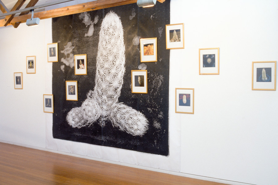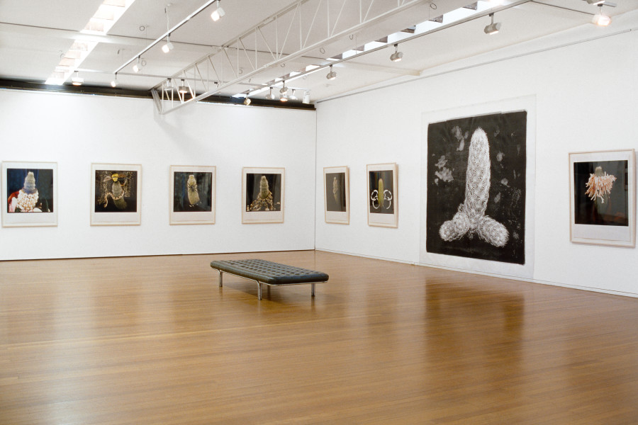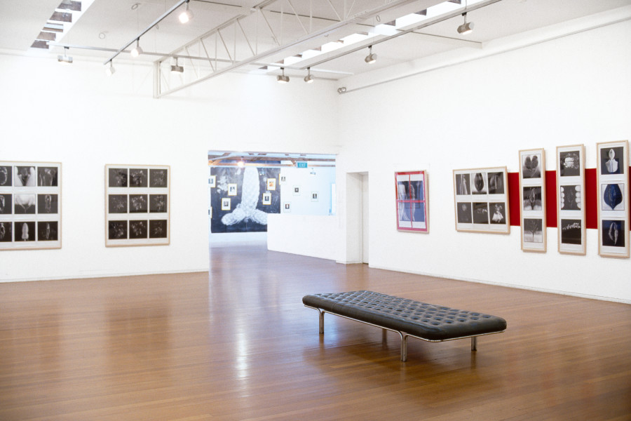 Sydney artist, Paul Ferman, (born 1948) photographs details of nature then enlarges them almost beyond the point of abstraction. He frames his silver selenite prints in orderly groups to accentuate the visual rhythms between different natural forms. It is as though his groups of photographs of overblown rose blooms, split seed pods and shrivelled leaves are the outsized specimens contained in the collection of a surreal botanist. His underlying concept is to freeze an exaggerated sense of intimacy.