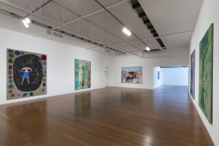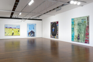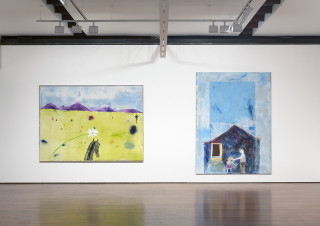 Roslyn Oxley9 Gallery is pleased to present new works by Jenny Watson in Peripheral Vision, this exhibition features seven large-scale paintings on Belgian linen, together with two smaller pieces on Japanese chintz that she had sourced from a small sewing shop in Tsukuba, Japan. Embedded in feminism and punk, the readily recognised autobiographical and fictional aspects of Watson’s oeuvre are delivered in these works through her distilled conceptual approach, distinct vernacular vocabulary, and the intimate details of her personal life. These earnest yet playful paintings combine colour, text, recurring figures and subtle humour to create a powerful narrative. Though deliberately naïve in style the paintings are acerbic in their emotional detail; a signature, rudimentary expressionistic style that Watson continues to master since her strategic abdication of realism in the 1970s.