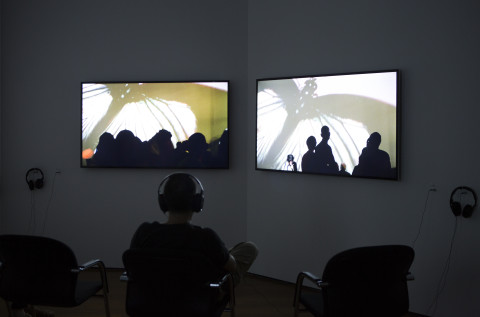 Alongside PLAYTIME, Isaac Julien will present KAPITAL, a two-screen video artwork depicting the artist in conversation with curators, critics and theorists including David Harvey, author “The Enigma of Capital”. KAPITAL montages archive footage from silent film, video art, contemporary art performances and Hollywood film with kinetic tracking shots of talks and audience interventions at ‘Choreographing Capital’ at the Hayward Gallery. A suite of six large-scale photographic works will complete the exhibition together.