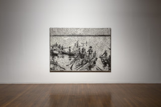 Daniel Boyd (b. 1982 Cairns, lives and works in Sydney) was recently included in Adelaide Biennial of Australian Art: Divided Worlds (2018); The Shape of Things to Come at Buxton Contemporary, Melbourne (2018); the travelling exhibition 3rd National Indigenous Art Triennial: Defying Empire, National Gallery of Australia, Canberra (2018); and A BEAST, A GOD, AND A LINE curated by Cosmin Costinas, Dhaka Art Summit, Bangladesh (2018). Boyd also participated in Mondialito, curated by Hans Ulrich Obrist and Asad Raza at the Boghossian Foundation, Villa Empain, Brussels (2017); the 20th Biennale of Sydney: The future is already here - its just not evenly distributed, curated by Stephanie Rosenthal (2016); All the Worlds Futures, curated by Okwui Enwezor at the 56th Venice Biennale (2015); Regarding Picasso: Contemporary Artists Responses to His Art at the Museo Picasso, Barcelona (2014); the Moscow International Biennale for Young Arts: A Time for Dreams, Moscow (2014); the Kochi-Muziris Biennale: Whorled Explorations, Kochi, India (2014); and the 2014 TarraWarra Biennale: Whisper in My Mask, Victoria (2014). Boyd presented a major solo exhibition Daniel Boyd: Bitter Sweet at Cairns Regional Gallery, Queensland in 2017. He also held solo exhibitions at the Institute of Modern Art, Brisbane (2016), Artspace, Sydney (2013) and at the Natural History Museum in London (2012). In 2016, Boyd was awarded an International Studio and Curatorial Program Residency, New York. Boyd was also recipient of the Bulgari Art Award in 2014, as well as two major commissions for Macquarie Bank and the Museum of Contemporary Art in Sydney. Boyd’s work has been included in other notable group exhibitions such as Countercurrents (2017); Adelaide Festival, SAMSTAG Museum of Art, Adelaide (2017); The Shadow Never Lies, Shanghai 21st Century Minsheng Art Museum, Shanghai (2016); Future Primitive, Heide Museum of Modern Art, Melbourne (2013); The 7th Asia Pacific Triennial of Contemporary Art (APT 7), Queensland Art Gallery | Gallery of Modern Art (GOMA), Brisbane (2012); and We Call Them Pirates Out Here, Museum of Contemporary Art, Sydney (2010). Boyd’s paintings are held in major public collections in Australia including the National Gallery of Australia, Canberra; the Museum of Contemporary Art, Sydney; the Art Gallery of New South Wales, Sydney; the National Gallery of Victoria, Melbourne and the Queensland Art Gallery | Gallery of Modern Art, Brisbane; Cairns Regional Gallery, Cairns; Gold Coast Ciity Gallery, Queensland; TarraWarra Museum of Art, Victoria, as well as notable international collections such as the Samdani Art Foundation, Dhaka, Bangladesh and the Kadist Collection in Paris, France. Roslyn Oxley9 Gallery has been representing Daniel Boyd since 2009.