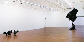 Roslyn Oxley9 Gallery is excited to announce its first exhibition of the work of prominent young New Zealand artist, Michael Parekowhai. Installed in the large gallery, the exhibition consists of three different types of figurative sculpture each of which powerfully activates the space surrounding it and each of which provokes a strong response in the viewer that cannot easily be accounted for in terms of the abstract physical attributes of the object. Indeed it is a signature characteristic of Parekowhai's work that it accommodates a number of interpretations, each distinct from the other. This is not an incidental feature i.e. not simply something that Parekowhai's work shares with all good art. Multiplicity of interpretation is perhaps its primary conceptual grounding, the common thread in a practice that visually shifts quite radically. The co-existence of different true accounts of each work operates like a constellation of coordinates positioning the work before us. We occupy one viewpoint at any one time unable to grasp the entire system at once. To maintain the equilibrium of the system, to recognize the grace, force and gravity of Parekowhai's work, we have to keep moving. Parekowhai has us on the run. The plural identities of each object have us outnumbered.