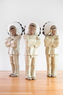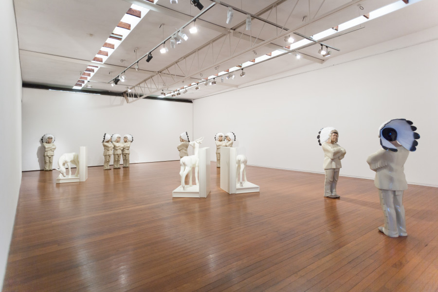 Seldom is Herd, consists of ten (‘little’) indian boys (The Brothers Grimm) and three antelope sculptures (Seldom is Herd). Both bodies of work are classic examples of how the artist subtly navigates the salient cultural phenomena that surround indigenous identity.