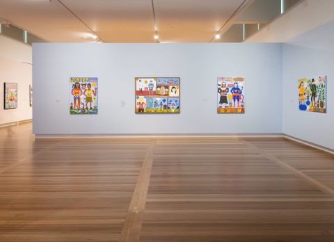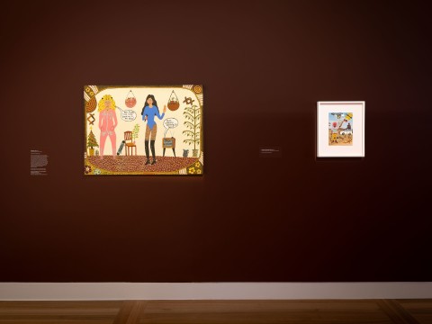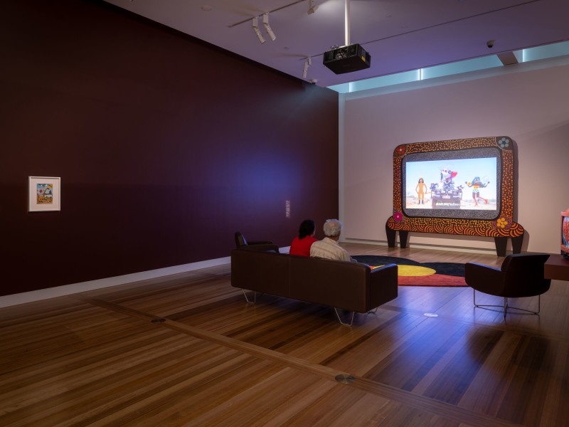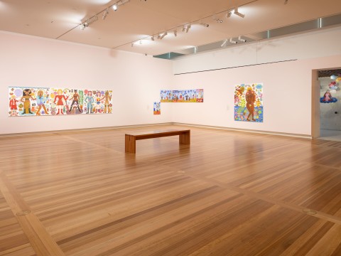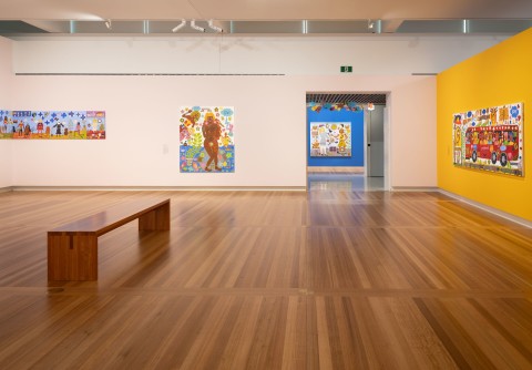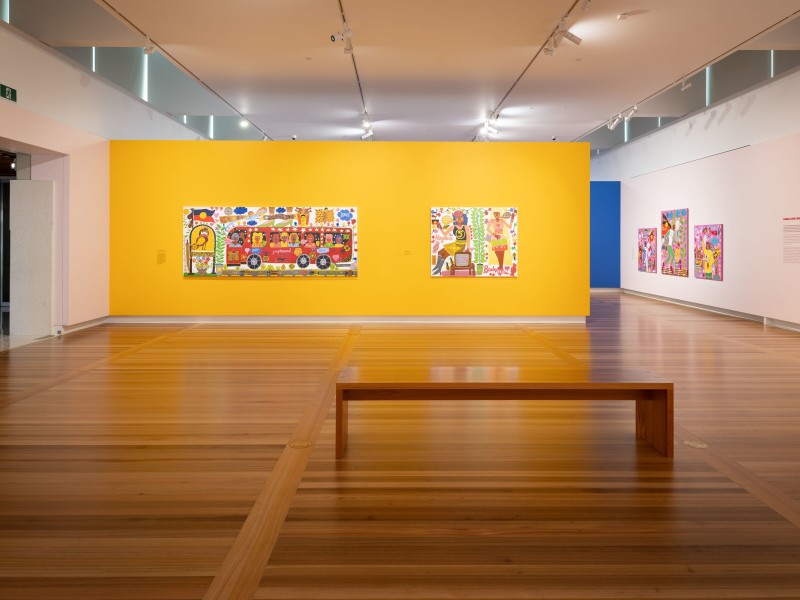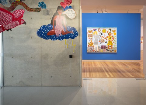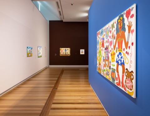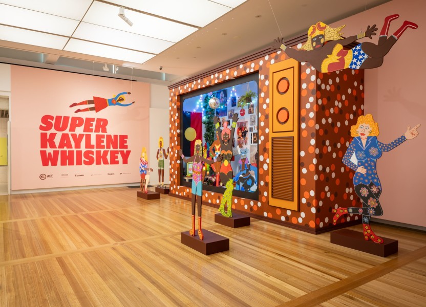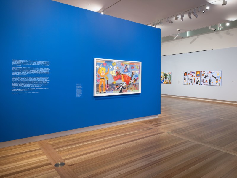 Super Kaylene Whiskey celebrates one of Australia’s leading contemporary artists, proud Yankunytjatjara woman Kaylene Whiskey. This major survey brings together works from across Whiskey’s career, showcasing her dynamic practice that is grounded in stories of First Nations joy and strength. Drawn from public and private collections, the exhibition features over 80 paintings, video work and installation from her early career to now, as well as a newly commissioned portrait.
