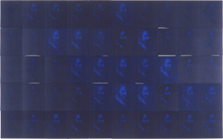 Lee's familiar grids combine monochrome panels with calligraphic wax spills and digitally-reproduced faces that disappear into an inky darkness. The explosions of black or coloured wax stand for the transforming energies of the universe. They are sensations that shiver across equanimous pools of colour. Lee makes these abstract gestures from a position of meditative concentration. This enables her to let the mark find unity with the transitory moment.