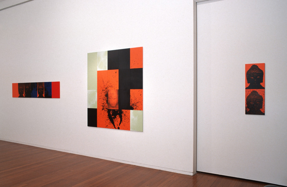 "Lee asks us to consider the relationship of art to the reality of an interdependent and transient world through exploring the relationship between copy and the original, or between different photocopies of the one image; and the interrelationships of panels within and between works. Her art pivots around the relation between self and other—through portraits of other people, and more recently 'splats' where the artist is a conduit for outside forces." (Linda Michael, Three Views of Emptiness—Buddhism and the Art of Tim Johnson, Lindy Lee, Peter Tyndall, exh. Cat. Monash University, 2001).