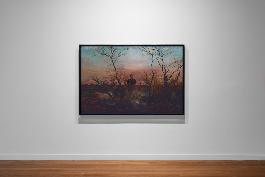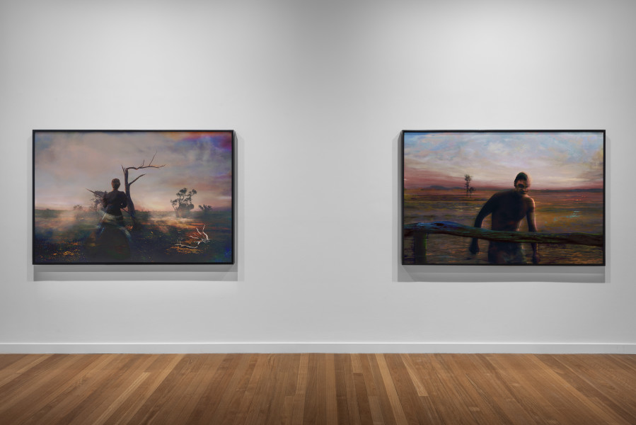 “Some time back, I travelled with a small photo crew to one of my Indigenous family’s ancestral areas looking for locations to stage a new photo drama using myself and actors… The locations I uncovered were visually featureless - meaning no great dramatic mountain range, forests or even a decent desert-scape - I only found endless dry brown scrub. In a sense, the plainness of the location and the dirt triggered my fictional open-ended narrative. I attempted to ‘fill it in’ as if to paint across a blank canvas.”