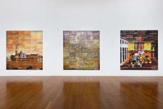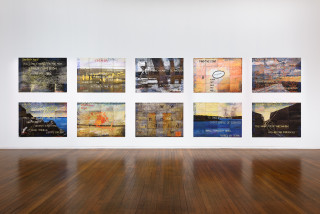 Imants Tillers (born 1950) is one of Australia’s foremost contemporary artists whose practice spans four decades. Since 1981 Tillers has used his signature canvas boards to explore themes relevant to contemporary culture, from the centre/periphery debates of the 1980s to the effects of migration, displacement and diaspora. Most recently his paintings have been concerned with place, locality and evocations of landscape. On these multiple panels Tillers juxtaposes layers of imagery and text drawn from a great many sources of influence and inspiration. The result is a convergence of ideas and a multiplicity of references that cite art – including other artists’ work – history, literature, politics, society and the artist’s personal history.