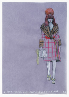 faux fur, flowered organza, sequin organza, French brocade, French silk brocade, French tapestry, metallic fringing, back light photo, wigs