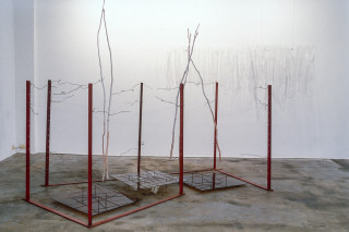from wire-fence grids,