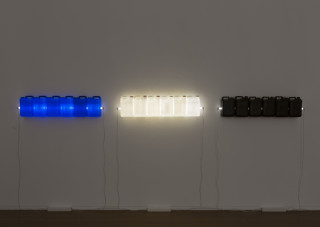 The Culbert house in London has a standard lamp with a plastic bucket as its shade. It looks like ‘a Culbert’. There are wall-mounted assemblages of plastic containers pierced by fluorescent tubes that came to be known as Bottle Combinations beginning in 1985 with Long White Cloud – some of these can be found lighting domestic spaces. There are works that have travelled in time: the punning Table Lamp II (1982) consisted of what looks like a genuine Robin Day table pierced by a fluorescent tube. The work was ‘lost’ but ‘remade’ in 2004, thus becoming a time-traveller.