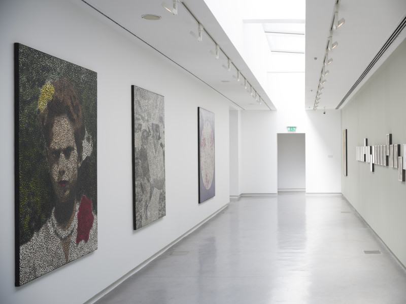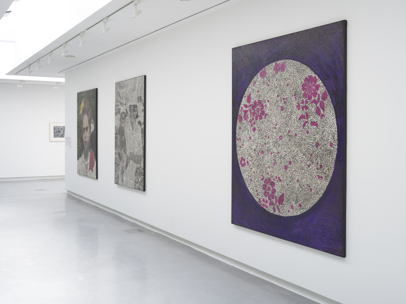 Daniel Boyd is a leading Indigenous Australian artist of Kudjala, Ghungalu, Wangerriburra, Wakka Wakka, Gubbi Gubbi, Kuku Yalanji, Bundjalung, Yuggera and ni-Vanuatu descent. Based in Sydney, he works across painting, sculpture, video and site responsive installations. He often interrogates the ways in which Indigenous people and knowledges are represented in western an colonial contexts. In his distinctive painting practice, images are overlain with an intricate arrangement of dots that he refers to as lenses or oculi. The dots offer multiple entry or exit points into his work and communicate the fragmented nature of knowledge and perception. Boyd's work is frequently underpinned by the idea of opacity, a concept conceived by cultural theorist Édouard Glissant, which is defined as a strategy for resistance, acknowledging unknowability and the limitations of human understanding. Since 2017, Boyd has created site-responsive installations that align with the idea he explores with his paintings. His installations reimagine and transform space by using circular cut-outs that work with light, darkness and idea of accumulation.