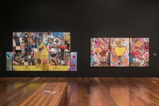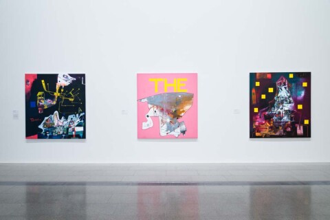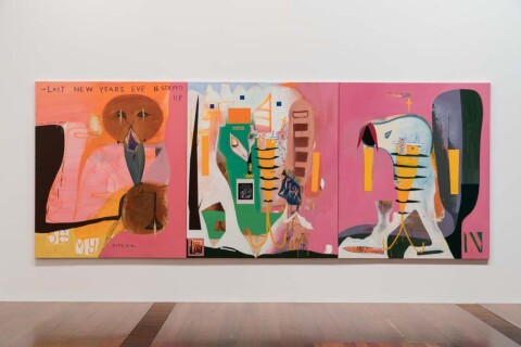 Sansom’s luridly coloured and densely layered canvasses explore physical, psychological and material transformation; they begin as one thing but swiftly morph into another. Sansom rallies against his own control and consciousness in his work – he aspires to constantly surprise and challenge himself as an artist.