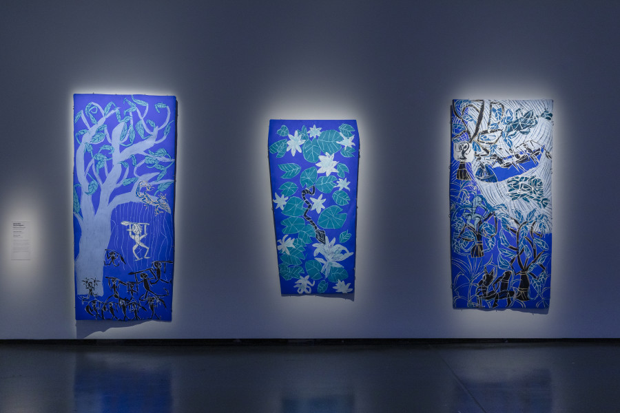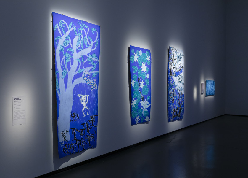 Under the Big Blue Sky features works by artists from across the country, each exploring blue in their own way and highlighting its visual, emotional, and symbolic significance. Featuring works by Kirtika Kain, Dhambit Munuŋgurr and Tom Polo.