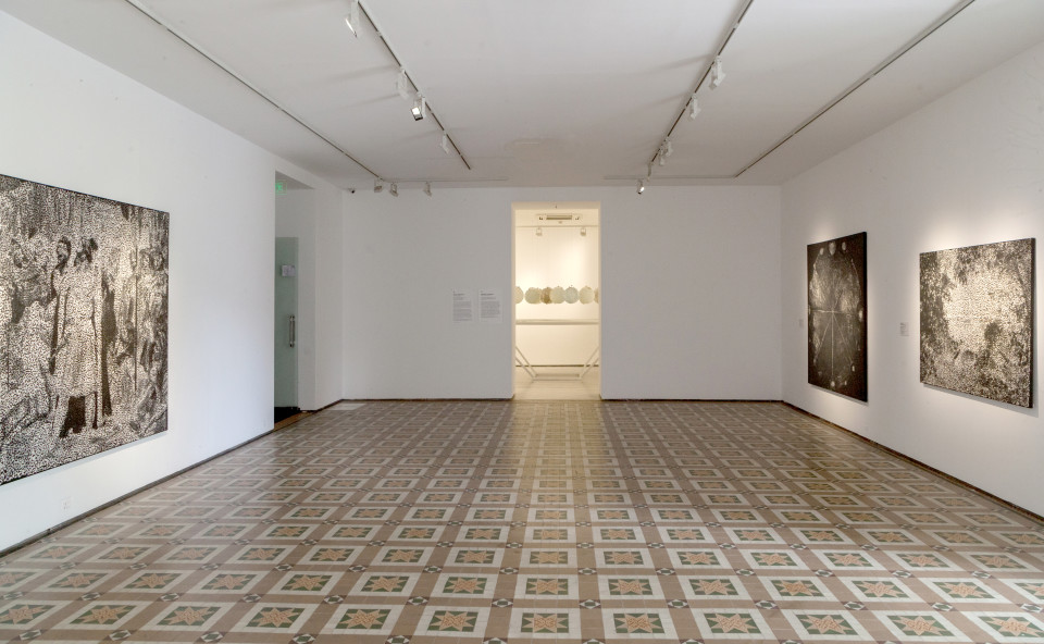 Featuring works by Daniel Boyd. Whorled Explorations is conceived as a temporary observation deck hoisted at Kochi. The exhibition draws upon a wide glossary of signs from this legendary maritime gateway to bring together sensory and conceptual propositions that map our world referencing history, geography, cosmology, time, space, dreams and myths.