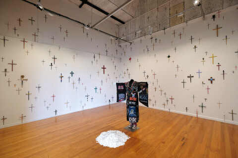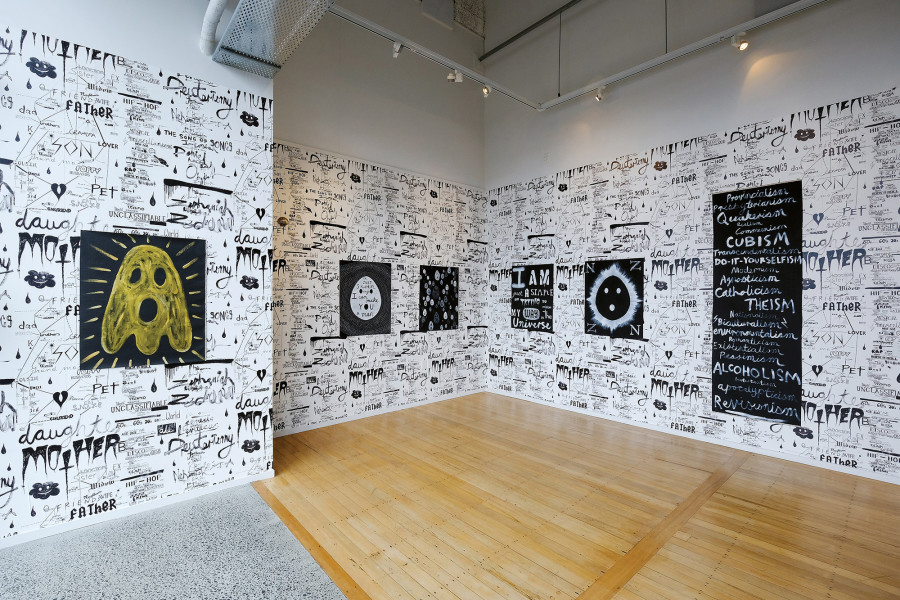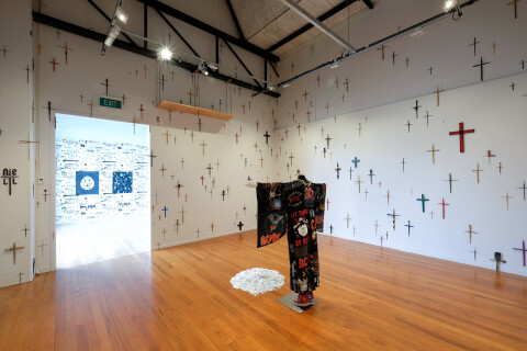 In this exhibition, heavy with the symbolism of opposites – light and dark, death and rebirth, silence and noise – Nell’s obsession with Colin McCahon is also evident, in her bespoke wallpaper and large-scale paintings. Continuing her long-standing interest in contemporary manifestations of spiritual traditions, she mines the magic of materials, Rock ‘n’ Roll’s potential for transcendence, and the power of words.